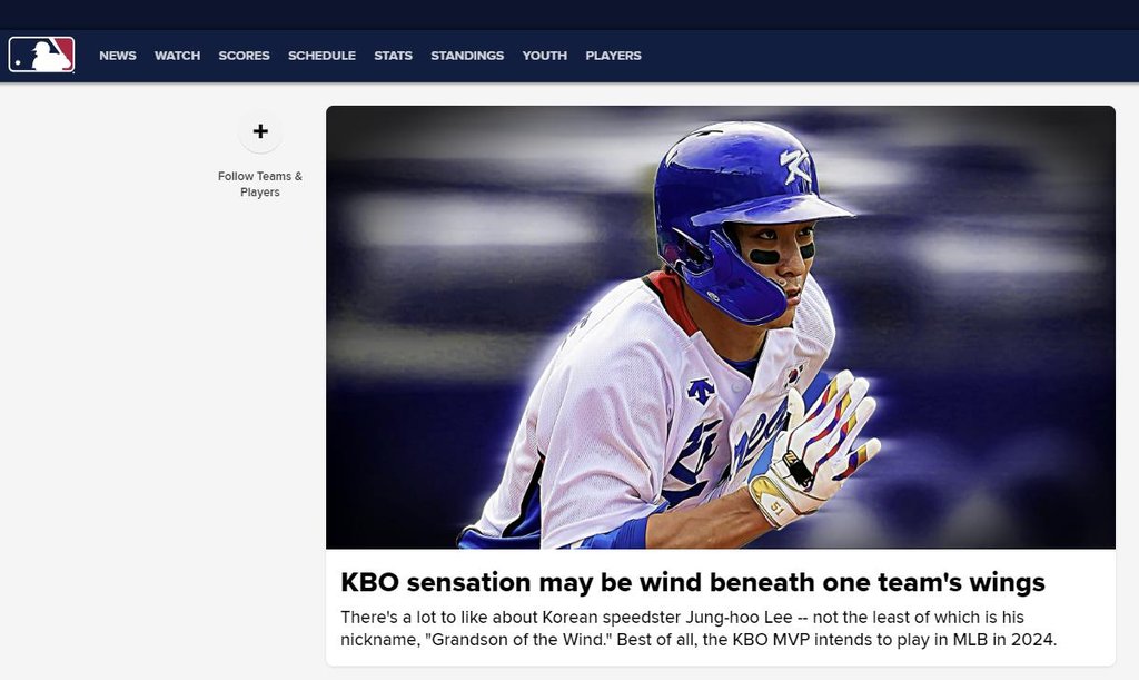 이정후가 일찍이 2024시즌 MLB 진출을 공언한 만큼 현지 언론에서도 이정후의 행보에 꾸준한 관심을 기울이는 것으로 보인다.