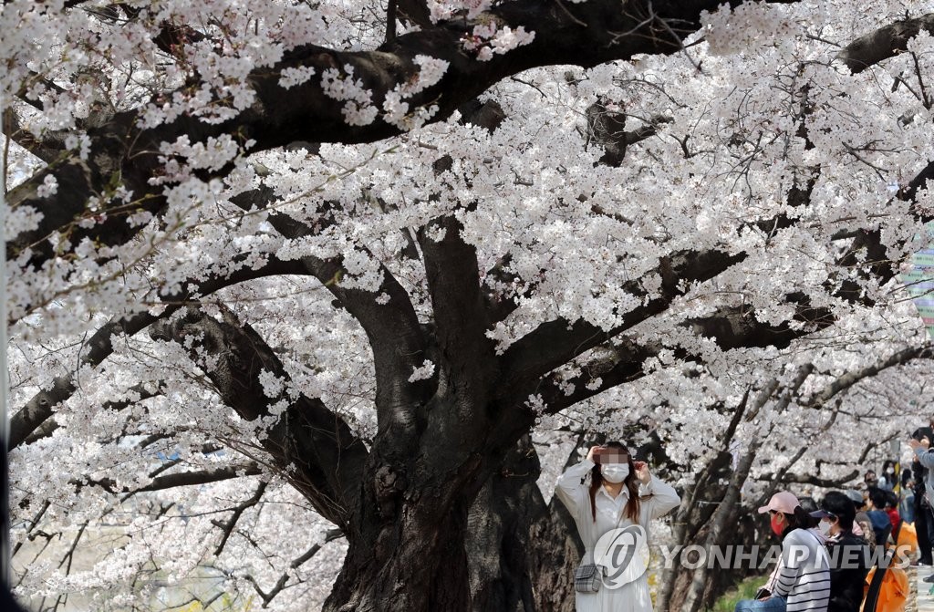 | ▲ 벚꽃 구경하는 청주시민 (청주=연합뉴스) 천경환 기자 = 6일 오후 청주시 상당구 무심천변 벚꽃길에서 시민이 꽃구경을 하고 있다. 2022.4.6 kw@yna.co.kr |