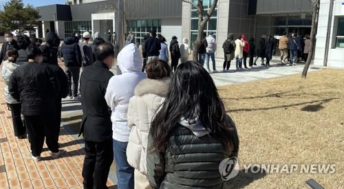 | ▲ 사전투표소는 북적 (전주=연합뉴스) 나보배 기자 = 제20대 대통령선거 사전투표 둘째 날인 5일 전북 전주시 덕진구 농촌진흥청에 마련된 사전투표소에 유권자들이 몰리면서 대기 줄이 형성돼있다. 2022.3.5 warm@yna.co.kr |