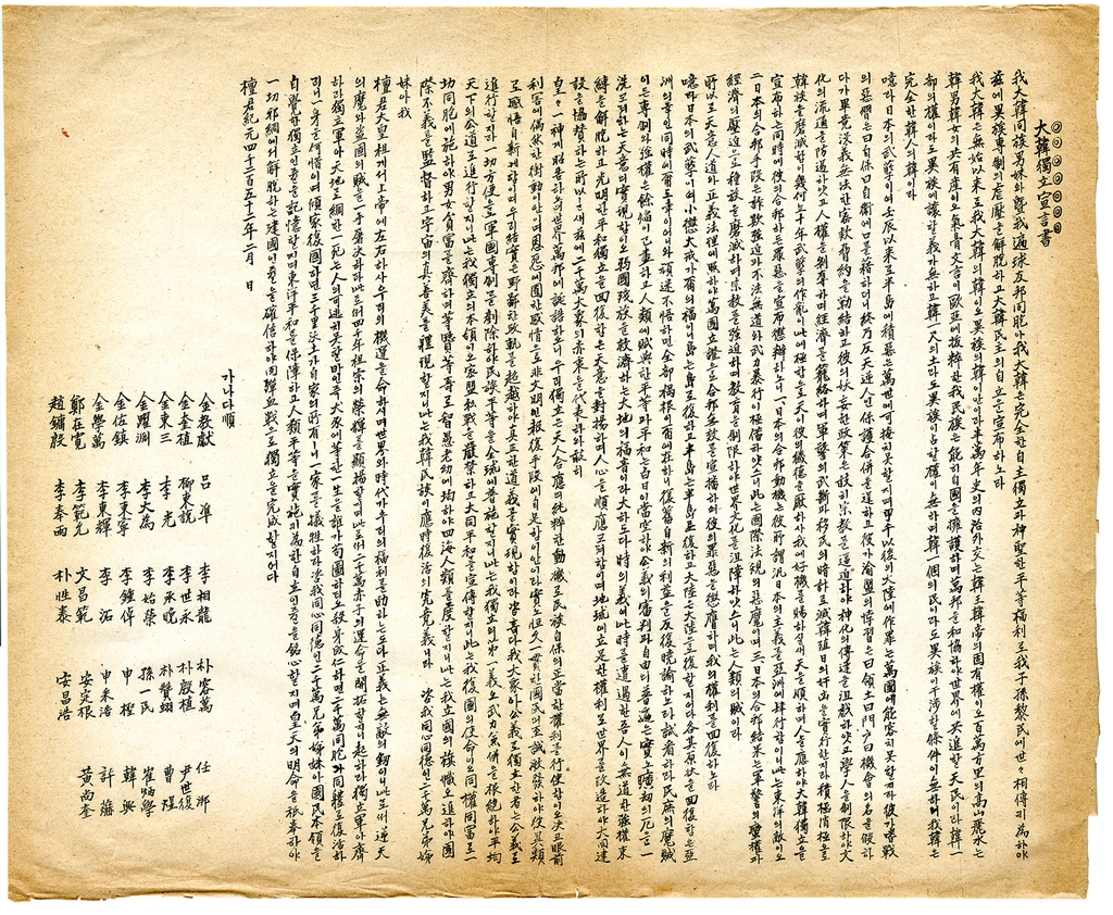 | ▲ 대한독립선언서 [국가보훈처 제공. 재판매 및 DB 금지] |