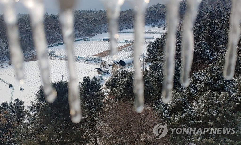 | ▲ 설날, 하얀 눈에 고드름까지 (춘천=연합뉴스) 이해용 기자 = 설날인 1일 강원 춘천 시내의 한 공동주택 난간에 고드름이 달려 있다. 2022.2.1 dmz@yna.co.kr |
