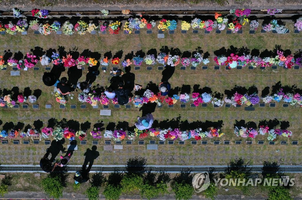 | ▲ 보고 싶었어요 (춘천=연합뉴스) 양지웅 기자 = 추석을 2주가량 앞둔 28일 강원 춘천시 동산추모공원을 찾은 시민들이 이른 성묘와 차례를 지내고 있다. 2022.8.28 yangdoo@yna.co.kr |