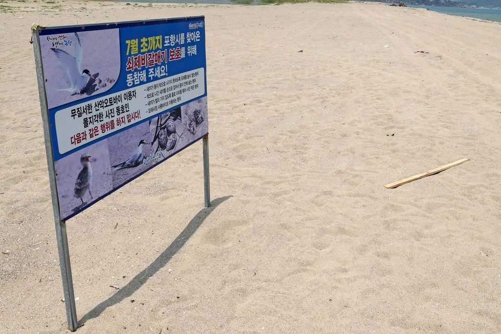 | ▲ 포항 바닷가에 서 있는 쇠제비갈매기 보호 안내판 [촬영 손대성] |