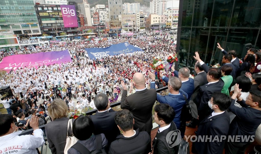 | ▲ BIE 실사단 환영하는 부산시민들 [연합뉴스 자료사진] |
