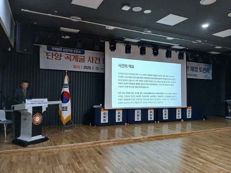 토론자로 나선 안병숙 단양군 행정복지국장도 "기억을 지키는 일은 유족의 몫이 아니라 국가의 책임"이라며 "특별법 제정을 통해 곡계굴 희생자의 법적 지위를 명확히 규정해 지원 대상을 확정해야 한다"고 밝혔다.