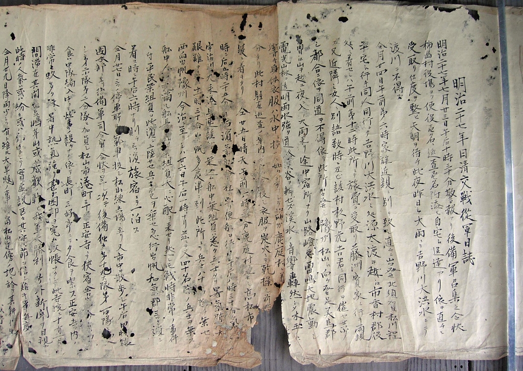 당시 일본군 쿠스노키 비요키치 상등병이 남긴 '진중일지(陣中日誌)'에 자세한 기록이 남아있다.