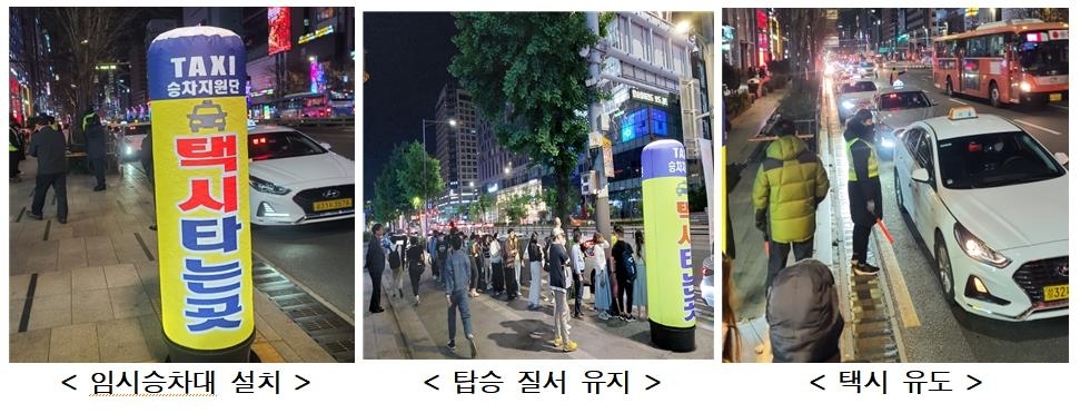 The city government plans to supply 2,500 additional late-night cabs and install temporary taxi stops in 12 locations starting Friday, including in Gangnam and Seoul Station, to match passengers with taxis on a one-on-one basis.