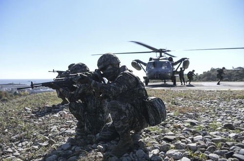 The training, organized as part of the annual Hoguk exercise, focused on an array of drills meant to enhance combat capabilities, including response measures against the North's drone and artillery provocations and counterterrorism operations involving key facilities.