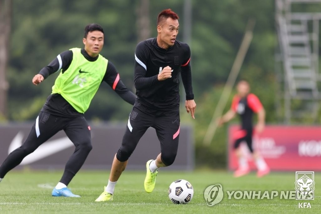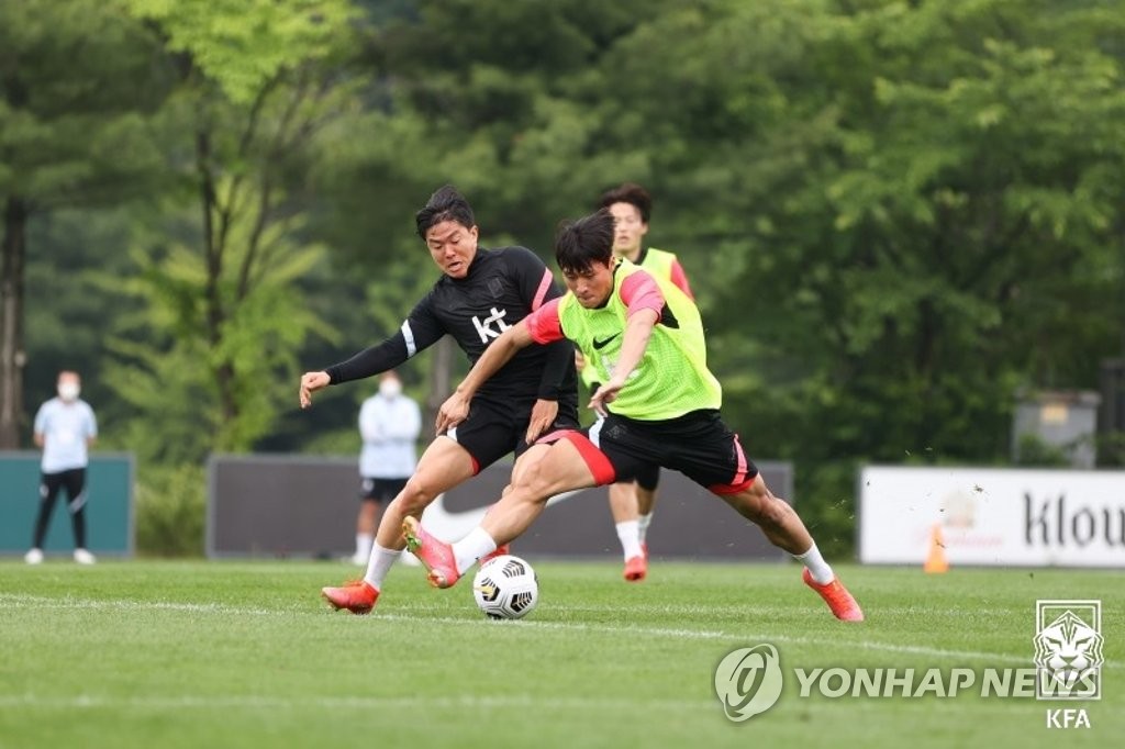 | ▲ 훈련에 매진하는 권창훈과 정상빈 (파주=연합뉴스) 2022 카타르 월드컵 아시아 지역 2차 예선에 나서는 대한민국 축구대표팀 권창훈과 정상빈이 1일 경기도 파주트레이닝센터(NFC)에서 훈련을 하고 있다. 2021.6.1 [대한축구협회 제공. 재판매 및 DB 금지] photo@yna.co.kr |