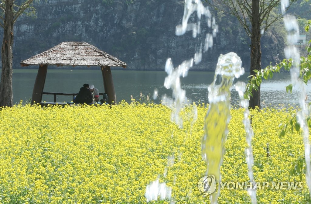 | ▲ 창녕 낙동강 유채밭 (창녕=연합뉴스) 이정훈 기자 = 낮 기온이 초여름을 방불케하는 27도까지 오른 12일 낮, 경남 창녕군 남지읍 낙동강 유채단지를 시민들이 한가롭게 거닐고 있다. 2022.4.12 seaman@yna.co.kr |
