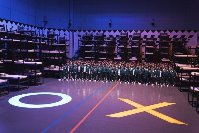 | ▲ "Squid Game" Season 2 introduces a new set design featuring large "O" and "X" marks on the floor of the participants' huge dormitory, in this photo provided by Netflix. (PHOTO NOT FOR SALE) (Yonhap) |