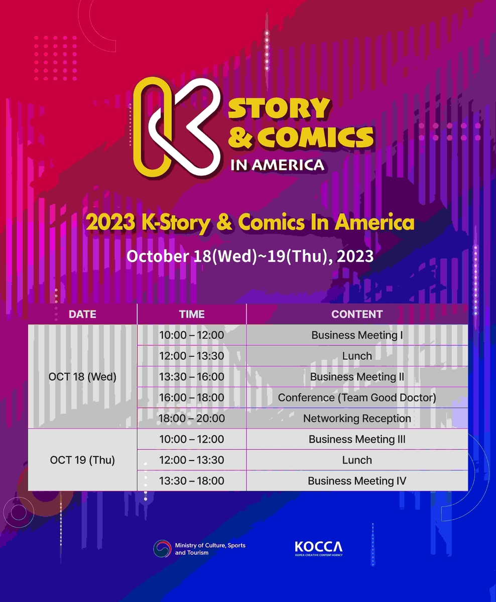 콘텐츠진흥원은 뉴욕 코믹콘 참가에 이어 10월 18~19일 미국 로스앤젤레스(LA)에서 '2023 K-스토리 & 코믹스 인 아메리카' 행사를 개최한다.