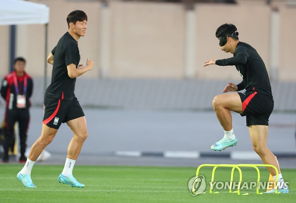 | ▲ 훈련하는 동갑내기 골잡이들 (도하=연합뉴스) 김도훈 기자 = 2022 카타르 월드컵 대표팀 황의조(왼쪽)와 손흥민이 22일(현지시간) 카타르 도하 알에글라 훈련장에서 훈련하고 있다. 2022.11.22 superdoo82@yna.co.kr |