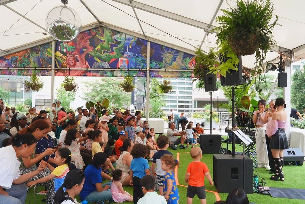| ▲ 지난 19일(현지시간) 미국 뉴욕시 링컨센터 댐로쉬 공원(Damrosch Park)에서 열린 가족용 프로그램 'K팝 댄스 배워보기'. [SK그룹 제공. 재판매 및 DB금지] |
