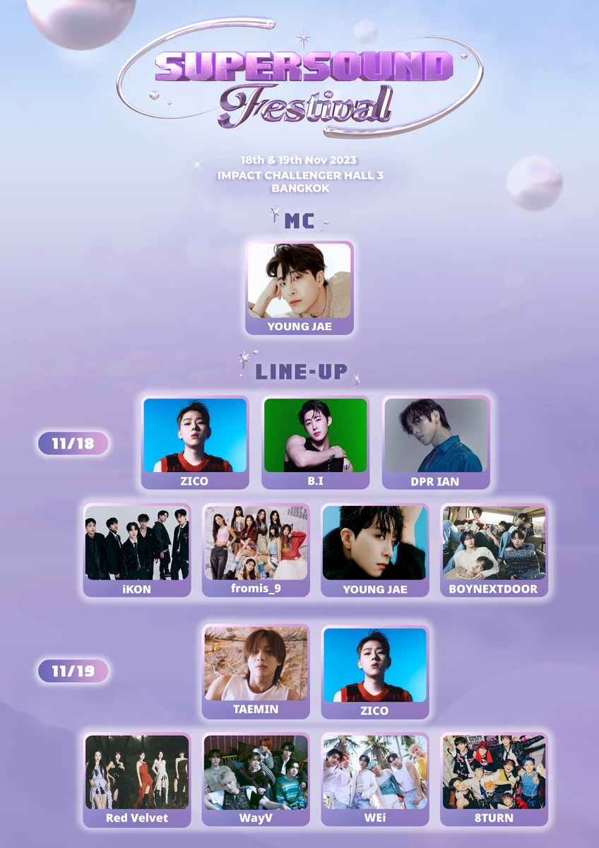 아울러 웨이션브이(WayV)와 지코, 프로미스나인, 아이콘(iKON), 보이넥스트도어, 에잇턴이 무대에 오른다.