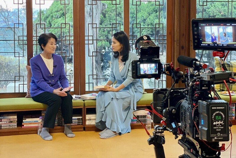 | ▲ 데이지 양 작가 인터뷰하는 이진영 감독 2021년 12월, 인천 '시민의 집' 촬영 현장의 데이지 양 작가(좌측)와 이진영 감독. 영화 '무지개나라의 유산' 마지막 편인 이 인터뷰는 1902년 우리나라 공식 이민의 출발지인 인천에서 진행됐다. [이진영 제공] |