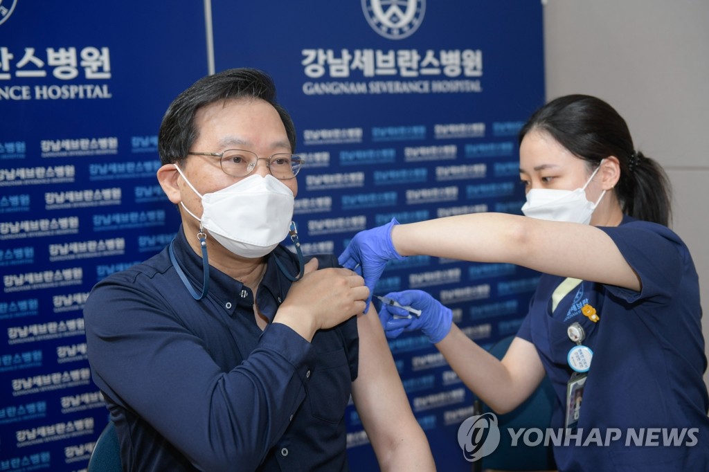 | ▲ Gangnam Severance Hospital Director Song Young-goo receives a COVID-19 vaccine shot at the hospital in southern Seoul on March 9, 2021, in this photo provided by the hospital. (PHOTO NOT FOR SALE) (Yonhap) |