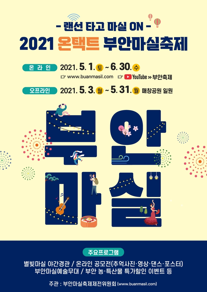 (부안=연합뉴스) 정경재 기자 = 전북 부안군은 5월 1일부터 2달간 '2021 온택트 부안마실축제'를 개최한다고 30일 밝혔다.