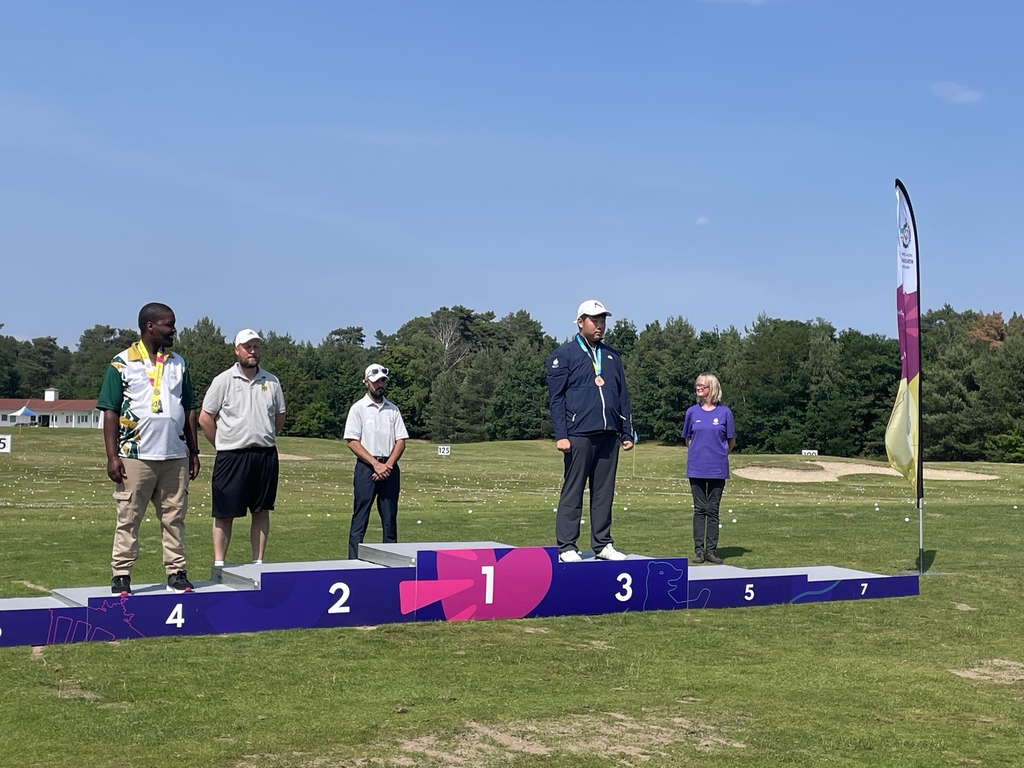 | ▲ 스페셜올림픽 골프 개인기술경기서 동메달 딴 손원희 선수 (베를린=연합뉴스) 이율 특파원 = 2023 베를린 스페셜 올림픽 골프 개인기술경기 종목에서 동메달을 딴 손원희 선수가 시상대에 올랐다. 2023.6.22 yulsid@yna.co.kr |