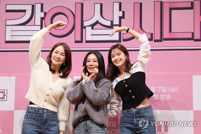| ▲ 예능 '황신혜의 같이 삽시다' 제작발표회 (서울=연합뉴스) 강민지 기자 = 6일 서울 영등포구 KBS아트홀에서 열린 예능 '황신혜의 같이 삽시다' 제작발표회에서 출연진들이 포즈를 취하고 있다. 왼쪽부터 장윤정, 황신혜, 정가은. 2026.1.6 mjkang@yna.co.kr |