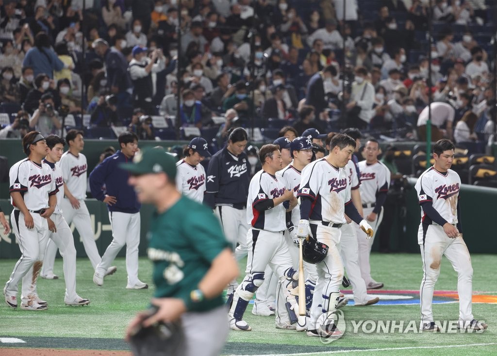 | ▲ 한국, 호주에 8대7로 패배 (도쿄=연합뉴스) 이지은 기자 = 9일 오후 일본 도쿄돔에서 열린 2023 월드베이스볼클래식(WBC) B조 본선 1라운드 한국과 호주의 경기에서 한국대표팀이 8대7로 진 뒤 경기장으로 나오고 있다. 2023.3.9 jieunlee@yna.co.kr |