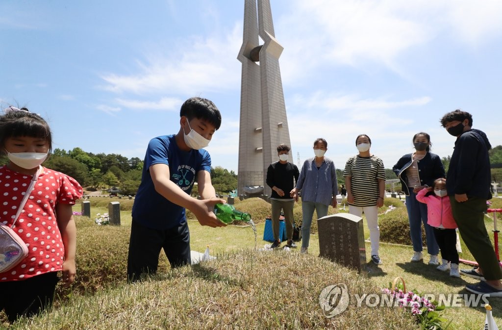 | ▲ 시민군의 묘소 참배하는 가족들 (광주=연합뉴스) 박철홍 기자 = 제42주년 5·18 민주화운동 기념일을 사흘 앞둔 주말인 15일 오전 광주 북구 국립 5·18민주묘지에서 시민군 희생자의 가족과 친척들이 열사의 묘소를 참배하고 있다. 2022.5.15 pch80@yna.co.kr |