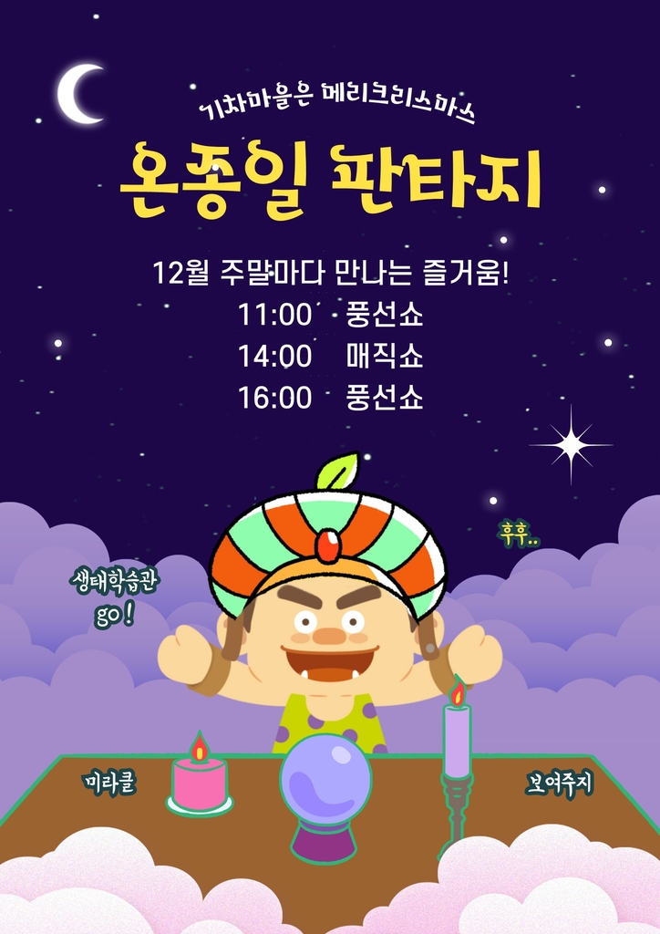 연말을 맞아 기차마을 내 생태학습관 중앙 로비에서 '하루 종일 선물처럼 만나는 마술'이라는 콘셉트로 하루 3회 마술 공연을 한다.