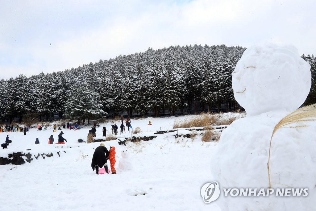 대신 산간도로 통제가 해제되면서 차량으로 갈 수 있는 한라산 1100고지 일대는 설경을 보려는 도민과 관객으로 북적였다. 눈이 쌓인 중산간 오름 곳곳에도 가족 단위 나들이객들이 눈썰매를 타거나 눈사람을 만들며 추억을 쌓았다.