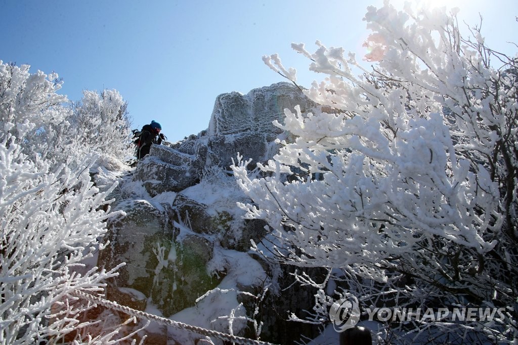 | ▲ 눈꽃 핀 무등산 (광주=연합뉴스) 조남수 기자 = 설 연휴 뒤 첫 주말인 지난 28일 광주 무등산에서 한 등산객이 눈꽃 핀 서석대를 오르고 있다. 2023.1.29 iso64@yna.co.kr |