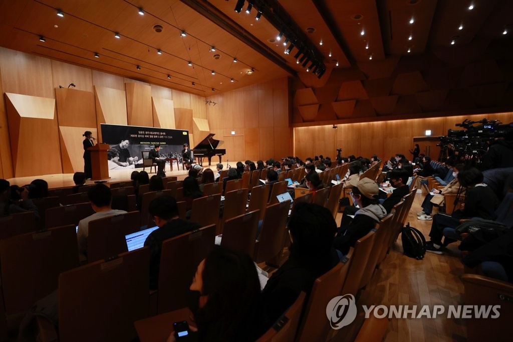 | ▲ 피아니스트 임윤찬 앨범 발매 간담회 열기 (서울=연합뉴스) 진연수 기자 = 28일 서울 서대문구 금호아트홀 연세에서 피아니스트 임윤찬과 지휘자 홍석원의 '베토벤, 윤이상, 바버' 앨범 발매 기자간담회가 열리고 있다. 2022.11.28 jin90@yna.co.kr |