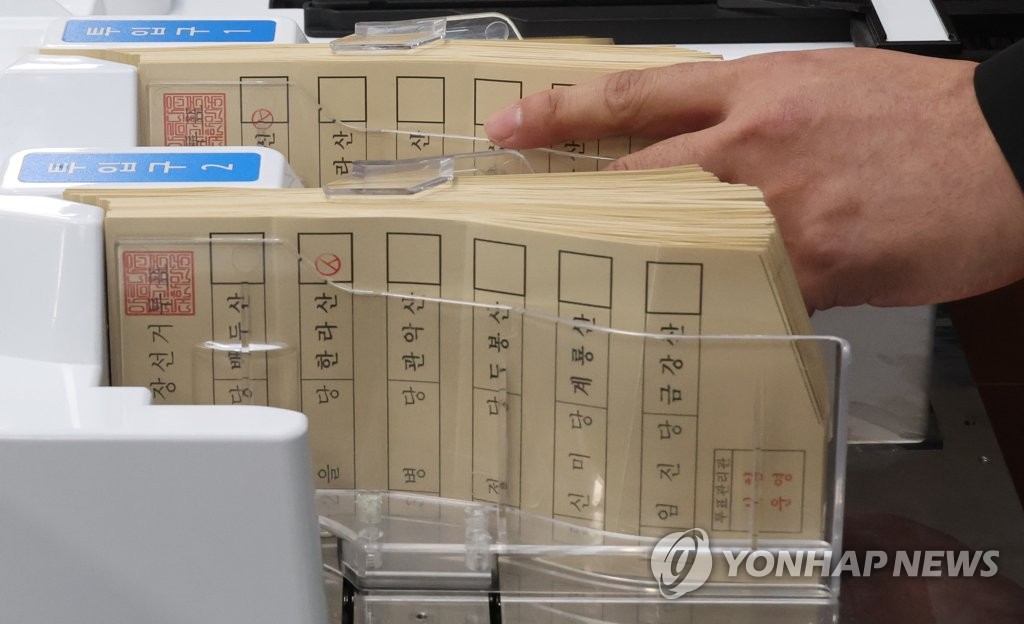 | ▲ This file photo, taken March 16, 2023, shows a demonstration of running a ballot counting device held at the National Election Commission in Gwacheon, south of Seoul. (Yonhap) |