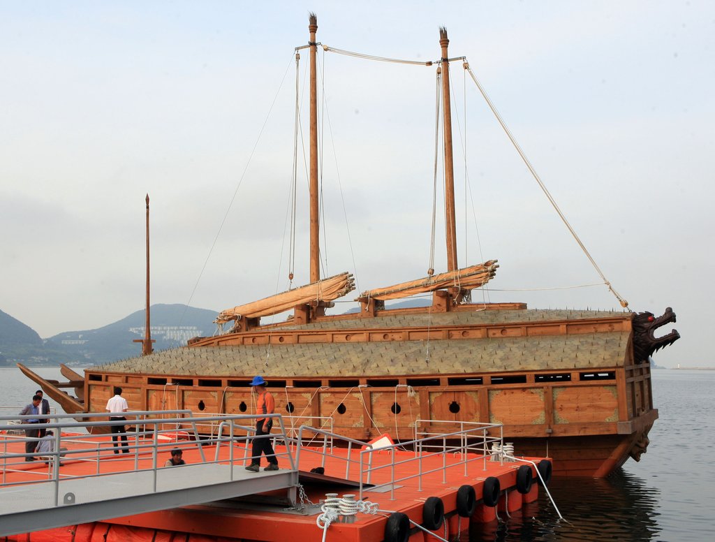 | ▲ 거제에 도착한 임진왜란 당시 거북선 2011년 6월 17일 경남 거제시 지세포 조선해양문화회관 앞 해상에 도착한 거북선. [연합뉴스 자료사진] |