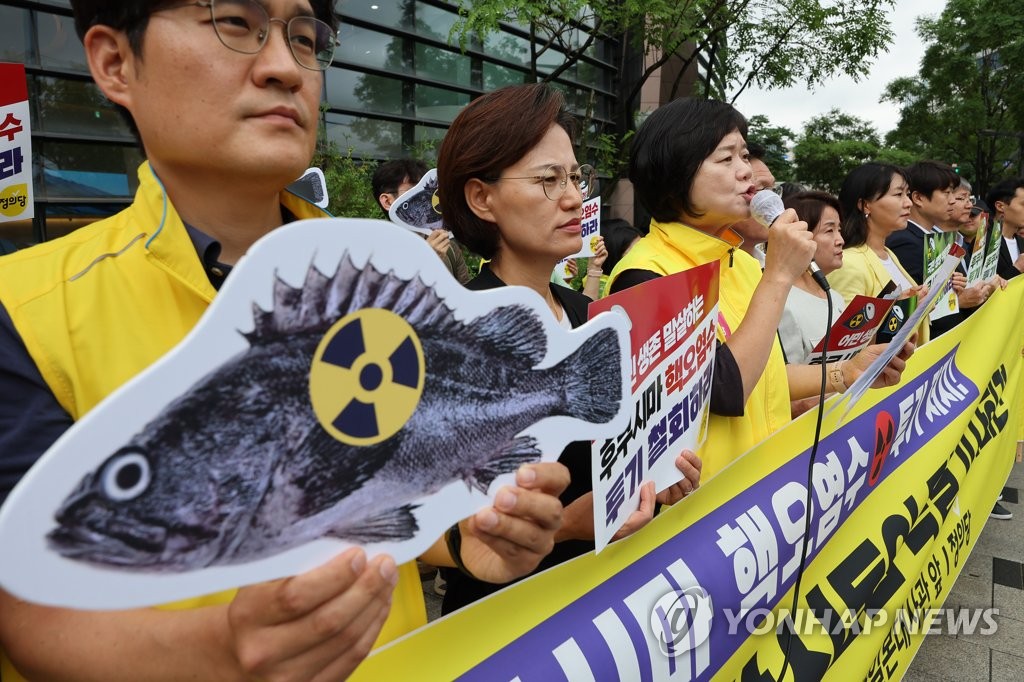 SEOUL, June 26 (Yonhap) -- The leader of the minor opposition Justice Party went on a hunger strike in front of the Japanese Embassy on Monday to protest Tokyo's plan to release radioactive water from the crippled Fukushima nuclear power plant into the ocean.