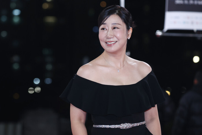 South Korean actress Ra Mi-ran poses for a photo on the red carpet at the 45th Blue Dragon Awards at KBS Hall in Seoul on Nov. 29, 2024. (Yonhap)