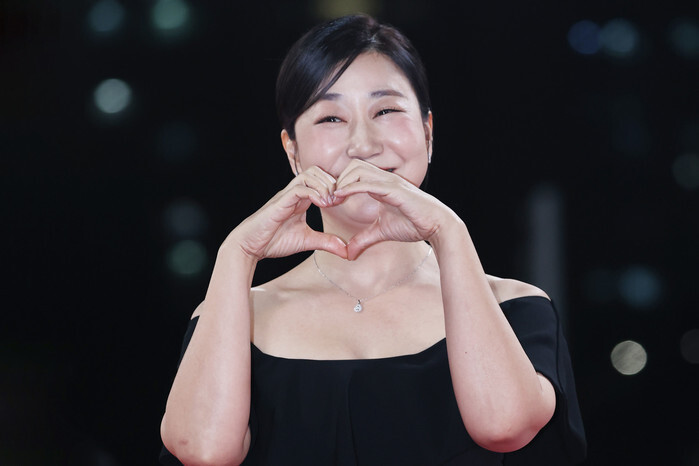 South Korean actress Ra Mi-ran poses for a photo on the red carpet at the 45th Blue Dragon Awards at KBS Hall in Seoul on Nov. 29, 2024. (Yonhap)