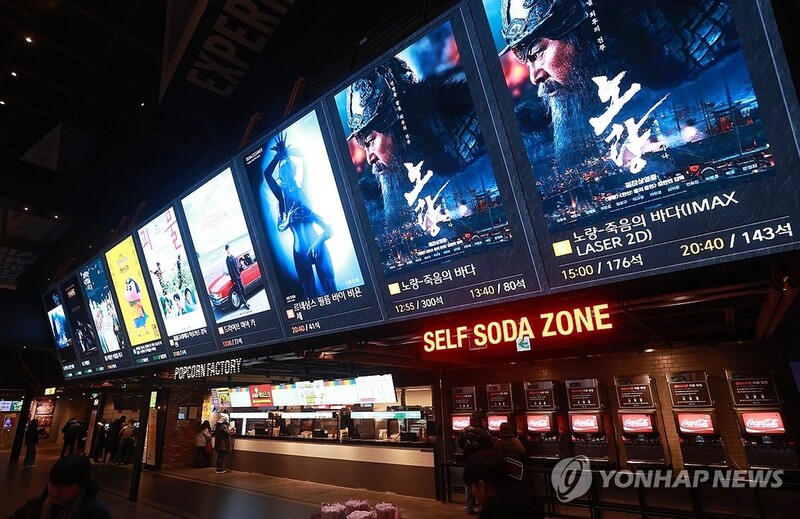 | ▲ 서울의 한 영화관에 걸린 영화 '노량' 예매 현황 스크린 [연합뉴스 자료사진] |