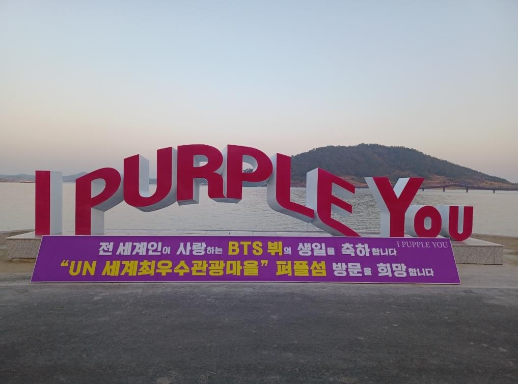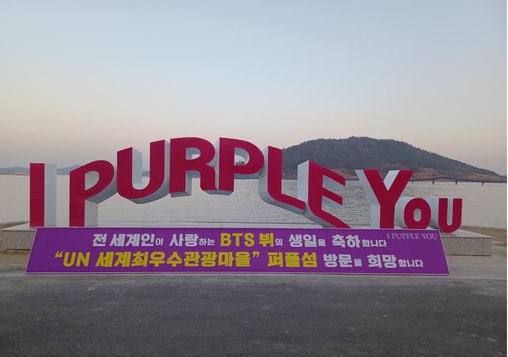 (신안=연합뉴스) 조근영 기자 = 세계가 인정한 퍼플섬에 방탄소년단 뷔의 '보라해'가 등장해 화제다.