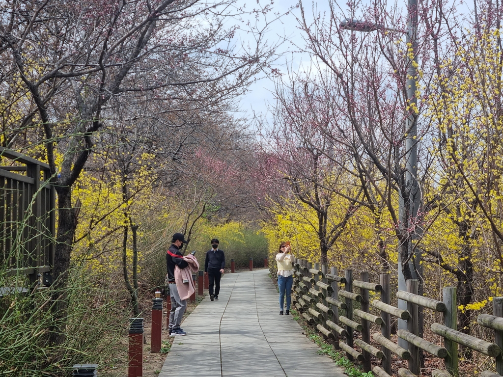 김씨는 "원래는 찻길로 다니는데 산책로에 꽃이 더 많이 피어서 오늘은 이쪽으로 왔다. 이틀 후 산책로를 개장한다던데 매일 올 것 같다"고 말했다.