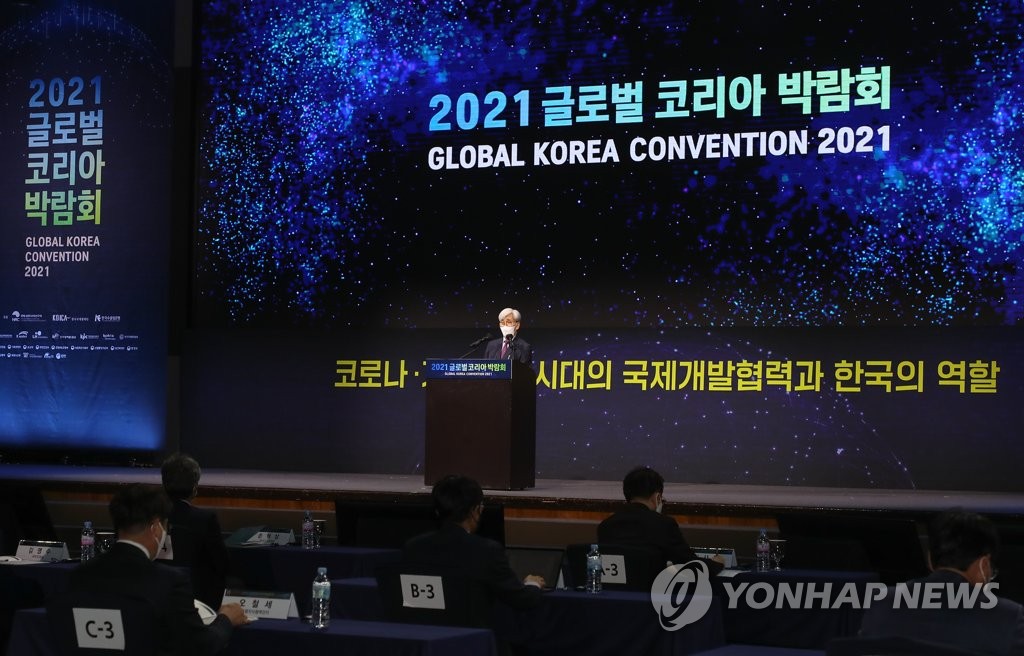 | ▲ 2021 글로벌 코리아 박람회 개막 (서울=연합뉴스) 류효림 기자 = 정해구 경제·인문사회연구회 이사장이 15일 서울 서초구 양재동 더케이호텔에서 열린 2021 글로벌 코리아 박람회 개막식에서 개회사를 하고 있다. 2021.11.15 ryousanta@yna.co.kr |