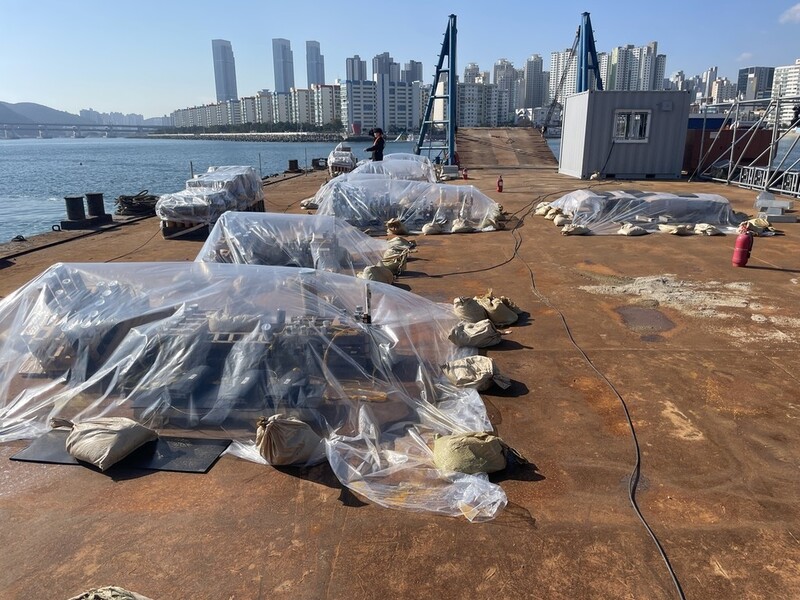 해경은 경비선을 타고 바지선 주변을 순찰하며, 외부인이 다가오지 않는지 쌍안경으로 주변을 둘러봤다.