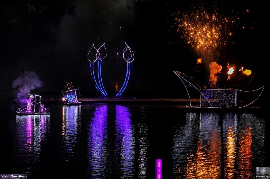 축제 첫날인 14일 저녁에는 LED 조명을 단 수상 공연용 배 13척에 배우들이 탑승해 수로변을 따라가면서 공연을 펼친다.