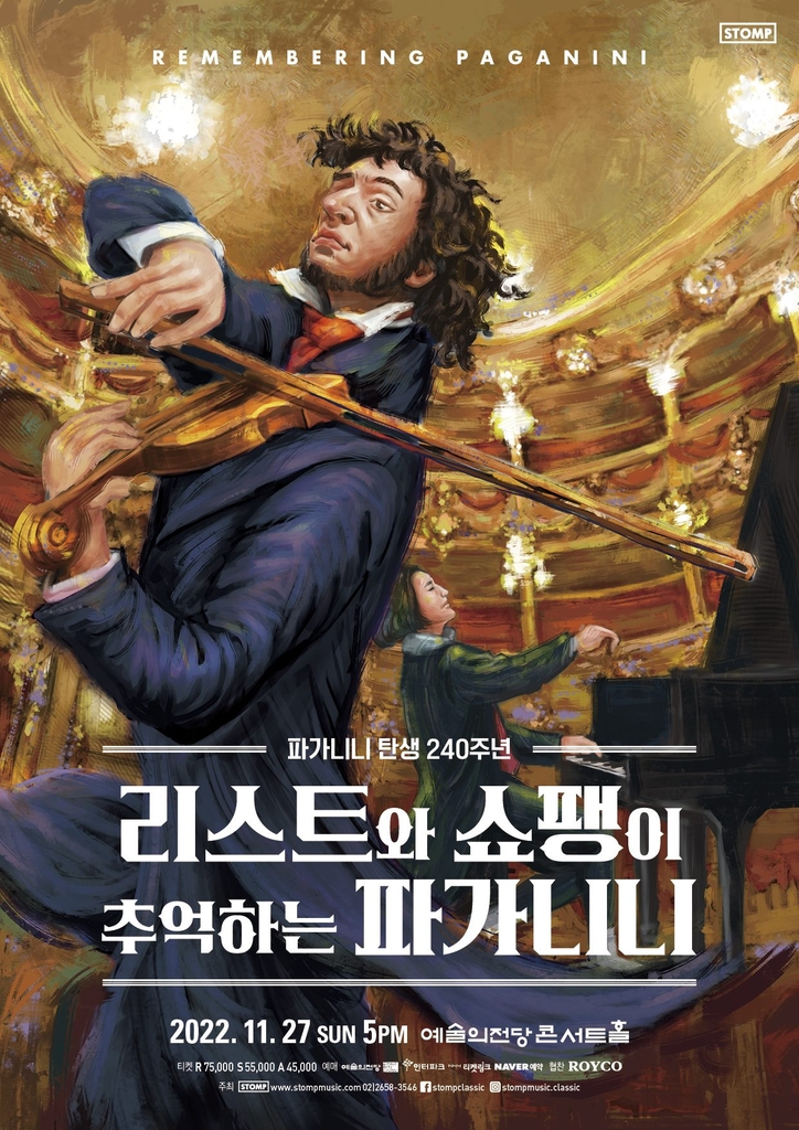 ▲ 파가니니 탄생 240주년 기념 공연 '리스트와 쇼팽이 추억하는 파가니니' = 전설적인 바이올리니스트이자 작곡가 파가니니의 탄생 240주년을 기념하는 공연 '리스트와 쇼팽이 추억하는 파가니니'가 오는 27일 서울 서초구 예술의전당 콘서트홀에서 열린다.