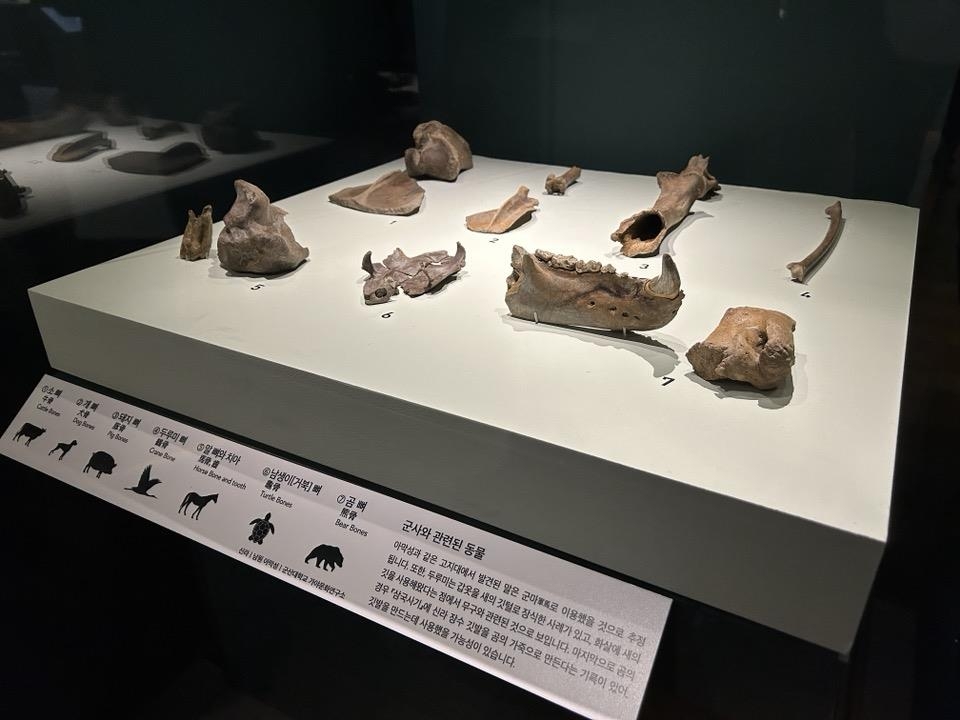 이곳에서는 소, 개, 돼지, 두루미, 말, 남생이, 곰 등 총 7가지 동물의 뼈가 확인됐다. 박물관 측은 "곰의 경우 '삼국사기'에 신라 장수 깃발을 곰의 가죽으로 만든다는 기록이 있다"고 설명했다.