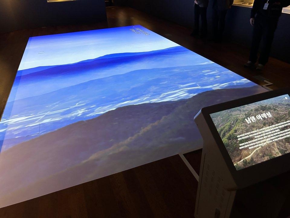 | ▲ 남원 아막성의 모습은 (익산=연합뉴스) 김예나 기자 = 10일 전북 익산시 국립익산박물관에서 개막한 '전북의 고대 성곽' 특별전 전시장 바닥에 역사상 신라와 백제 간에 격렬한 쟁탈전이 벌어졌던 곳인 남원 아막성의 모습이 비치고 있다. 2023.1.10 yes@yna.co.kr |