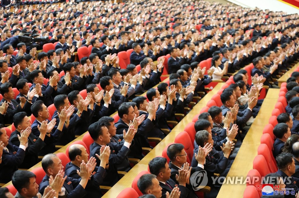 ▲ This photo, released by the North's Korean Central News Agency on Aug. 11, 2022, shows unmasked North Korean officials clapping as they attend a national meeting on anti-epidemic measures in Pyongyang the previous day. (For Use Only in the Republic of Korea. No Redistribution) (Yonhap)