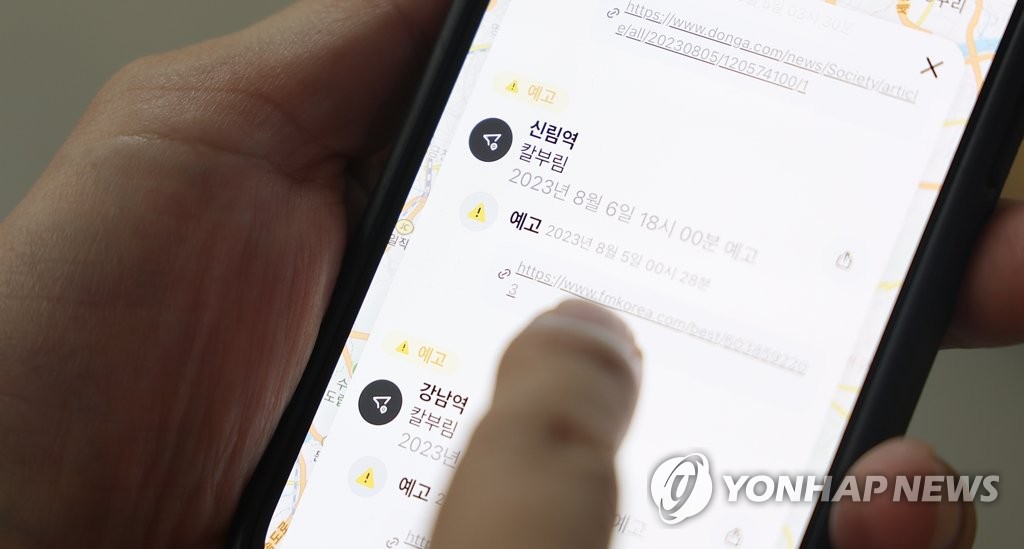 | ▲ A person looks at a website that updates the latest murder threats posted online on Aug. 7, 2023. (Yonhap) |