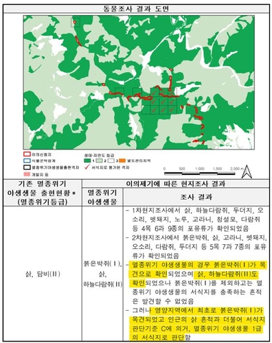 사업자 측은 일대 식생 보전 가치가 미흡하고, 멸종위기종이 발견되지 않았다는 이유로 지난해 4월 영양군에 생태·자연도 등급 수정 및 보완 신청을 하기 위해 현지 조사를 요청했다.