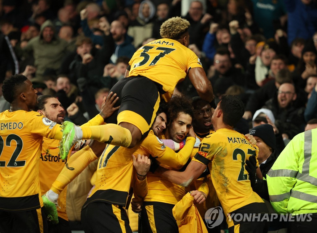 | ▲ 아이트 누리 결승골에 환호하는 울버햄프턴 선수들 [로이터=연합뉴스] |