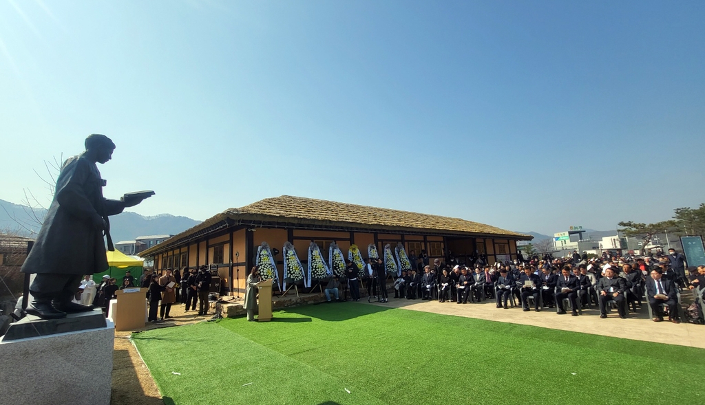 육동한 시장은 추모사에서 "지난 20년간 문인과 시민들의 염원이던 김유정 선생의 동상이 생가 밖으로 나와 더 가까이 관람객과 만나는 역사적인 날이 됐다"며 "영원한 청년, 김유정 선생의 문학혼을 기리며 한마음으로 새로운 100년을 준비하자"고 말했다.