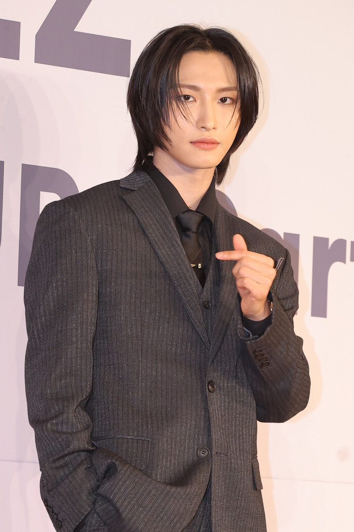 Seonghwa, a member of South Korean boy group Ateez, poses for a photo during a showcase to promote the group's eleventh mini album "Golden Hour: Part 2" in Seoul on Nov. 14, 2024. (Yonhap)